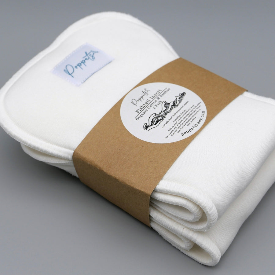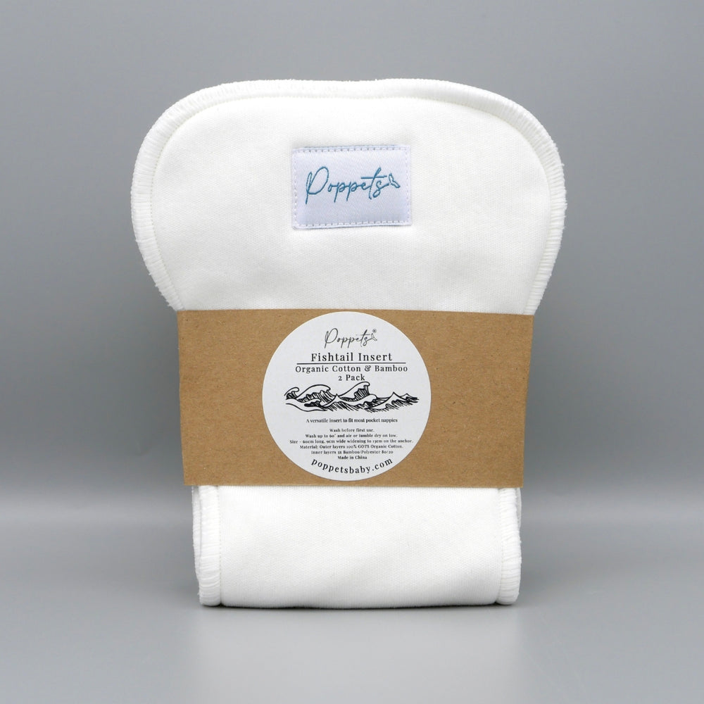 A long and thirsty insert made from 100% GOTS organic cotton and bamboo meaning it is soft and pliable when worn. Shaped for versatility, simply fold the fishtail in half for all over coverage or fold up to 3 times placing absorbency where needed providing a superior wet zone of 15 layers.