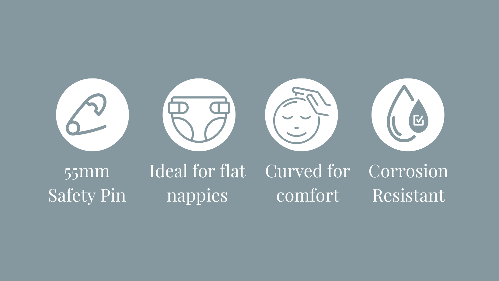 Use to secure flat nappies/terry squares in the traditional way.