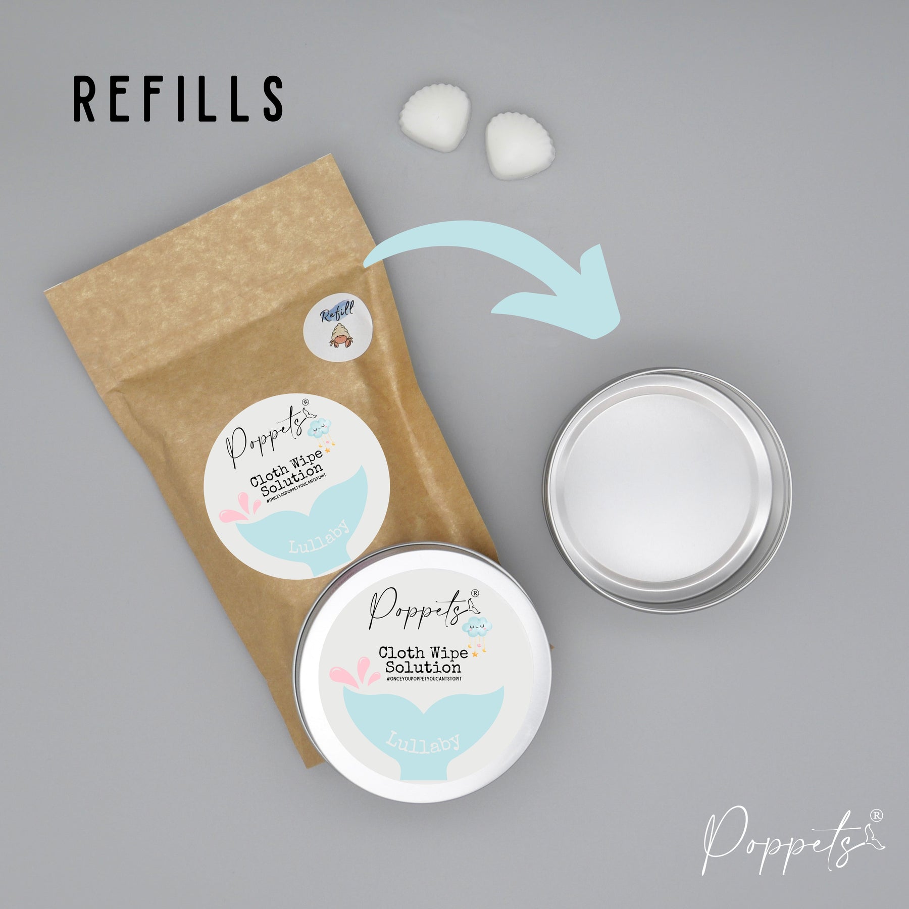 Simply melt a Poppet in freshly boiled water and pour it over clean, reusable wipes.